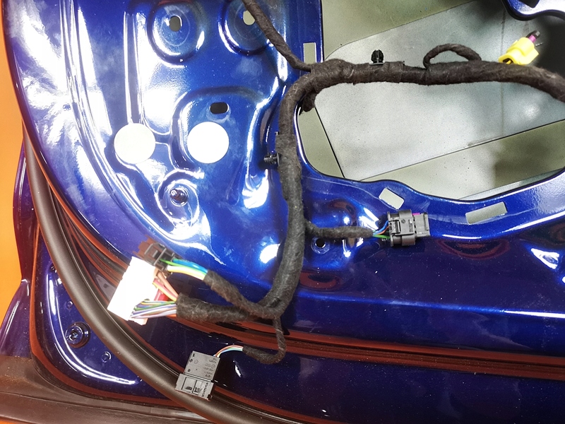 Die Tür mit beleuchtetem Griff, Zierleisten und Elektrokabelbaum inklusive