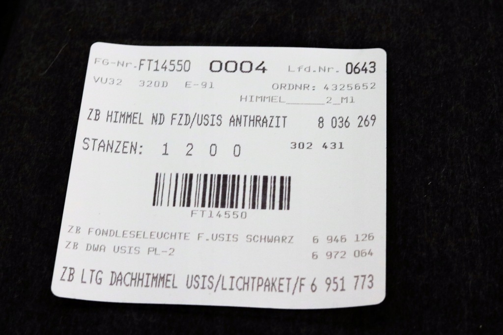 BMW E91 DACHHIMMEL SCHWARZ M-PAKET, SÄULEN SET