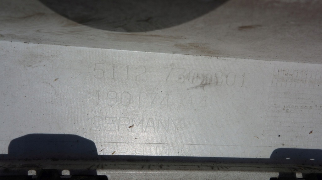 Gebrauchte originale Stoßstange in gutem Zustand, wie auf den Fotos zu sehen, an der markierten Stelle leicht wellig. Haken komplett - drei Querstangen repariert.