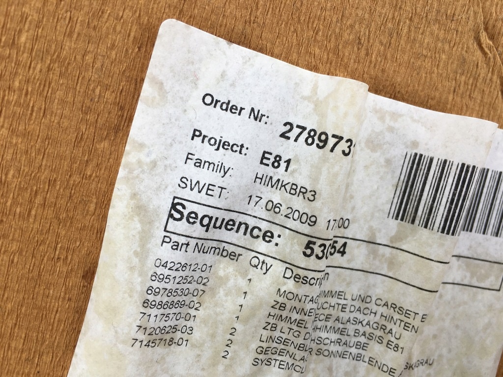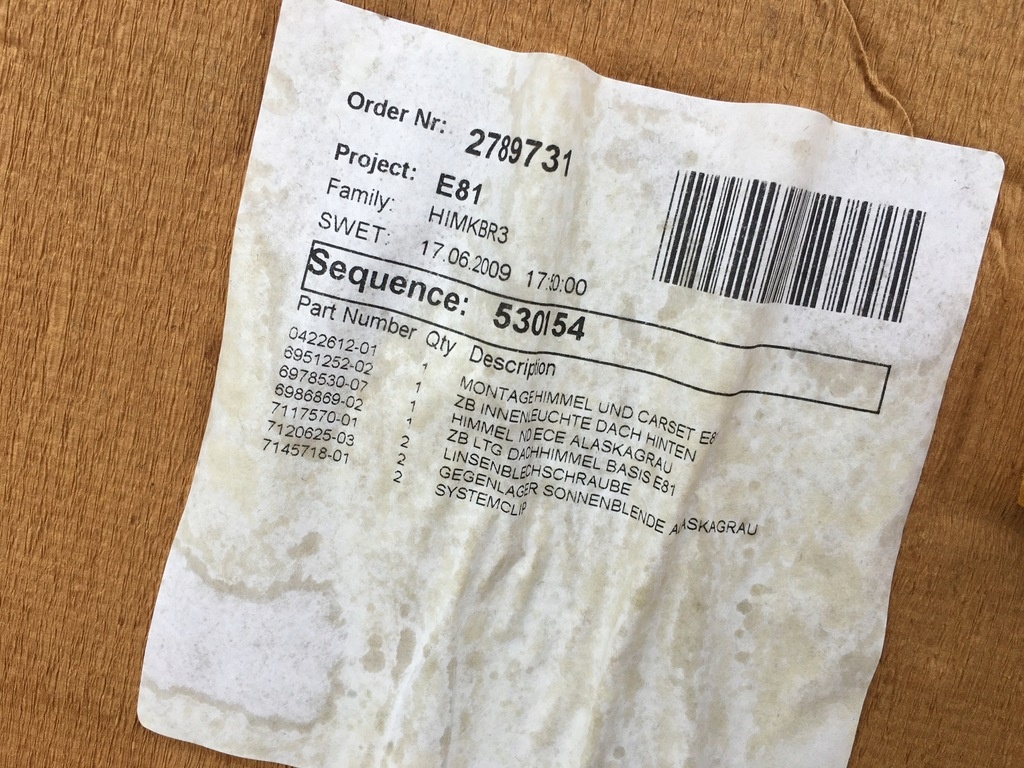 Dachhimmel ausgebaut BMW 1er E81 Lift 2009 Baujahr 2.0 Benzin 122 PS Bezeichnung N43B20A Lack 668 SCHWARZ 2