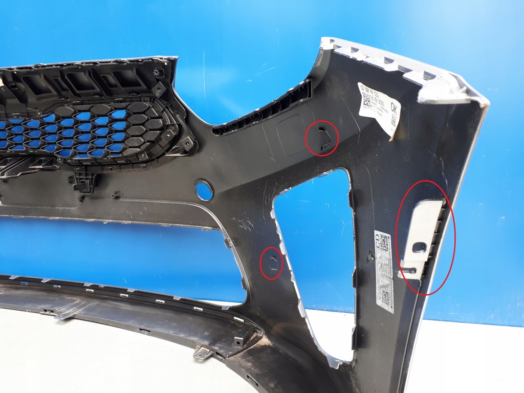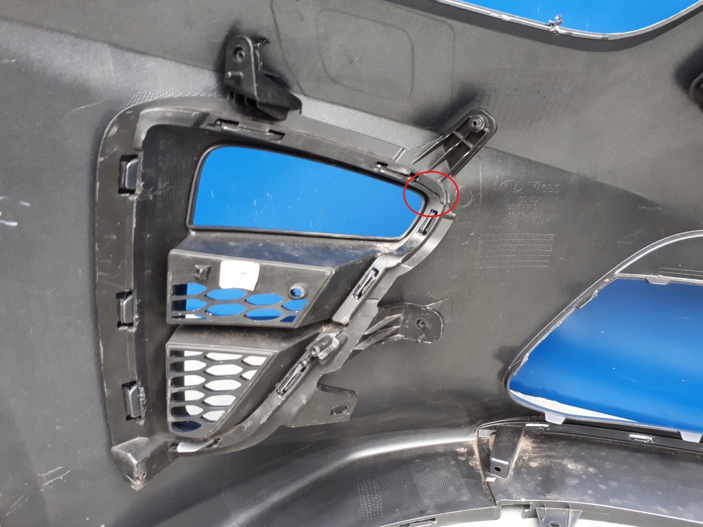 IM STOSSFÄNGER, EIN GESCHWEISSTER RISS AUF DER RECHTEN SEITE AM HALOGENRAHMEN UND DEM RECHTEN RAHMENGRIFF. FEHLEN VON ZWEI RECHTEN HALOGENRAHMEN-BEFESTIGUNGEN. AUF DEN FOTOS GEKENNZEICHNETE SCHÄDEN LINKER HALOGENRAHMEN LEICHT GEBROCHEN, AUF DEM FOTO GEKENNZEICHNET - BESCHÄDIGUNG NICHT SICHTBAR.