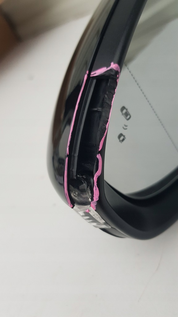DER SPIEGEL HAT EINEN BESCHÄDIGTEN RAHMEN DES SPIEGELS, DER AUF DEN BILDERN SICHTBAR IST