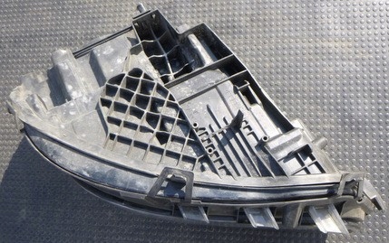 Der Scheinwerfer hat eine verschlissene Linse und beschädigte Halterungen.