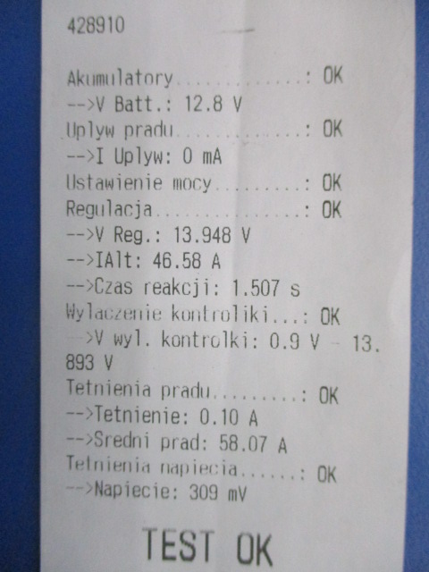 Beschreibung: MITSUBISHI A002TC0982, 110A, getestet auf ONYX TMA-Gerät, Testergebnis auf dem Foto (I, FL, 1,5 dCi, 8 V, 45 kW, 61 km, ABS, 5d Minivan, Motorcode K9KU716, Farbcode CM030) - Qualität A && RENAULT 1,5 dCi LICHTMASCHINE A002TC0982 GETESTET