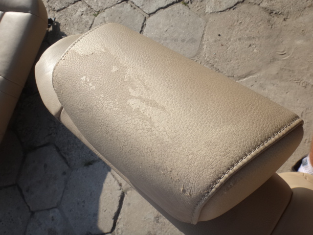 ZUSTAND: GUT - AUSGEBLASENES LEDER AN DEN KOPFSTÜTZEN, GESICHTER AUF DEN FOTOS SICHTBAR