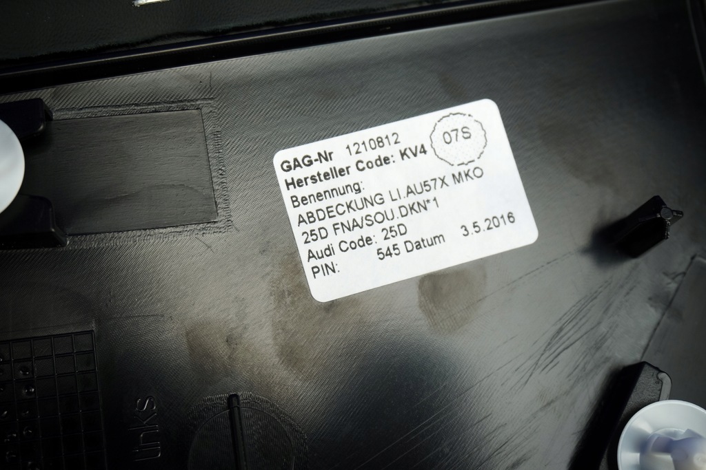 Verkaufsgegenstand ist eine Lederabdeckung / Seitenverkleidung (linke Seite) des Mitteltunnels für den Audi A6 / S6 / RS6 4G und A7 / S7 / RS7 4G8